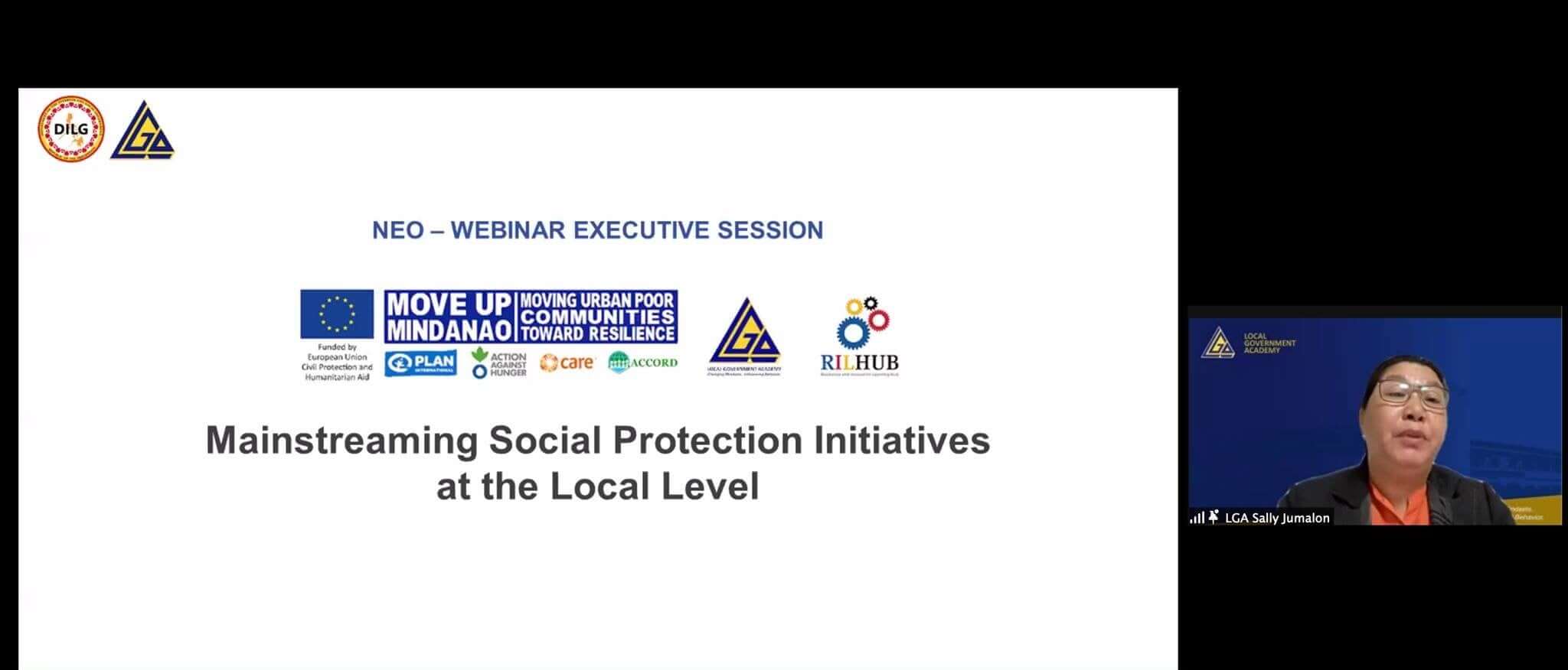 A webinar on ‘Mainstreaming Social Protection Initiatives at the Local Level’ was launched last Thursday, June 24, which was organized by the Moving Urban Poor Communities Toward Resilience (MOVE UP) project in partnership with the Local Government Academy. The webinar was attended by almost 500 local chief executives and local government unit staff from all over the Philippines.