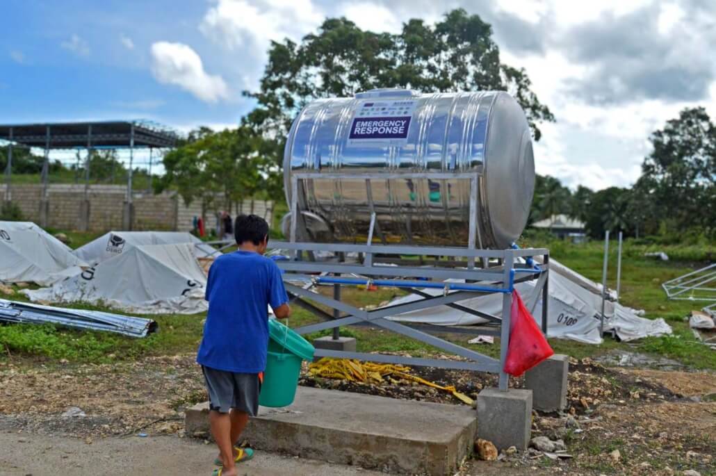 In photo: Henry makes his way to the water tank built by Action Against Hunger as part of the ACCESS emergency response, with funding from the EU Civil Protection and Humanitarian Aid. (Photo by Joyce Sandajan for Action Against Hunger)