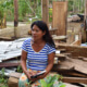 In the photo: Lorna Morales walking with the pail they received from the hygiene kit from UNICEF. Photo by Martina Vercoli for Action Against Hunger.