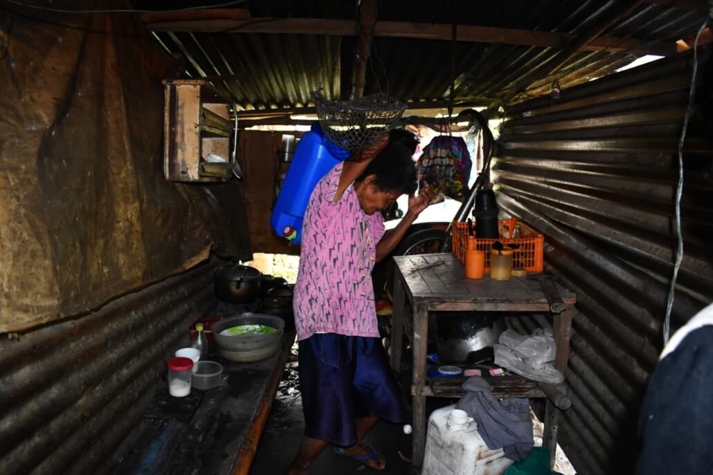 When Typhoon Emong struck, water entered Beatriz’s home from two directions: heavy rain from above and runoff cascading down the mountain behind her house. Panic set in—her husband, now bedridden, could not move on his own. With the help of a neighbor, she tried to get him to safety while lifting their belongings onto an elevated wooden platform inside the house. Despite their efforts, two to three feet of floodwater quickly filled the room.