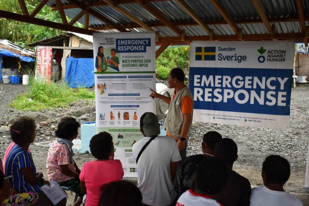 In photo: Action Against Hunger staff conduct an awareness-raising session on the cash assistance supported by SIDA in the community of Sitio Pidpid. (Photo by Martina Vercoli for Action Against Hunger.)